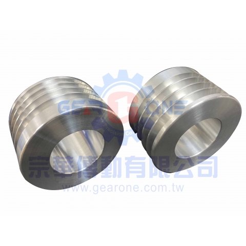 三角皮帶輪是指與三角皮帶(截面呈梯形)搭配使用的滑輪,它在皮帶輪溝槽中產生楔入作用,透過摩擦力來傳遞動力。 此設計能有效增加摩擦力並傳動較大扭矩,且所需的張力較平皮帶小,可減輕軸承負載,因此廣泛應用於工業驅動和交通工具。
