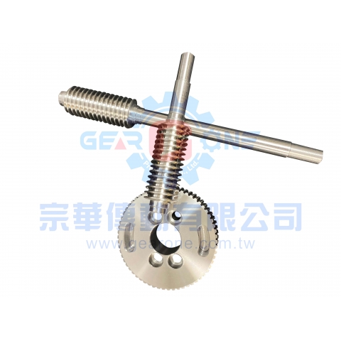 蝸輪與蝸桿是由一個螺旋狀的蝸桿與一個圓形輪狀的蝸輪組成的齒輪傳動系統,用於在互相垂直的兩軸之間傳遞動力,並能夠提供高減速比、高扭矩和自鎖功能,常見於減速機、升降機構等設備中。